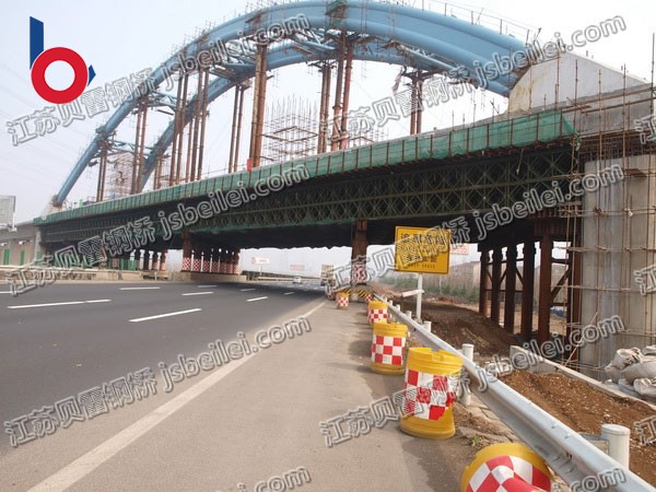 5)加強安全防護,設置安全防護標志。貝雷橋施工時,應設置安全欄桿和安全網,腳手架必須牢固施工。貝雷橋架安裝范圍內必須設置警戒線,操作過程中不得設置警戒線,并指派專人指揮。嚴禁操作人員飲酒后工作,嚴格遵守操作規(guī)程,營造安全文明的施工環(huán)境。
